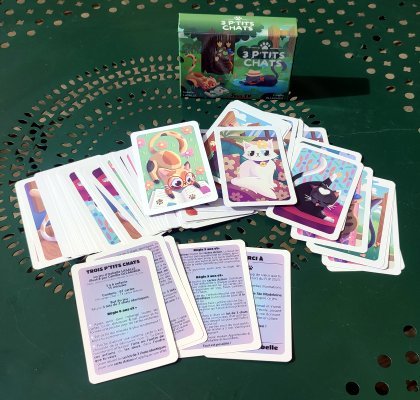 Si vous n'aimez pas les chats et si vous n'aimez pas jouer avec vos enfants ou petits-enfants, refermez vite la boîte de 3 P’tits Chats, rangez-la et prenez à la place un des 10416 autres jeux de la collection de l'Escale à jeux. Sinon, amusez-vous à collectionner les triplettes de chats tout en profitant des cartes d'action qui ajoutent quelques avantages et chat-mailleries. Les plus jeunes retireront les cartes d'action pour jouer à Triple mémo.