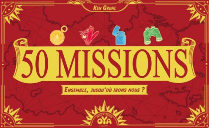50 Missions est un de mes jeux préférés. J'y joue depuis des mois et j'en ai déjà racheté cinq boîtes car à chaque fois que je l'ai fait découvrir, le jeu plaisait tellement que je laissais mon exemplaire et devais en racheter un nouveau ! * Le jeu est donc très addictif. Une partie… Nous perdons – nous sommes arrivés deux fois à faire 49 missions mais jamais 50. Du coup, nous rejouons, espérant y arriver enfin ! Non ? Recommençons alors ! Le principe du jeu est simple, facile à expliquer en quelques minutes même avec des joueurs occasionnels : 4 cartes sont placées face visible pour commencer autant de défausses. Les cartes existent en 4 couleurs avec des valeurs variant de 1 à 7. 4 missions sont également placées face visible sur la table – par ex, une mission demande qu'il y ait exactement 3 cartes rouges, une autre que la somme de tous les cartes jaunes soit égale à 11... Chacun reçoit 4 cartes en main. À son tour de jeu, le joueur doit poser une carte de sa main sur une défausse à condition qu'elle soit de la même couleur, de la même valeur ou les 2. Le but étant de réaliser une des missions affichées, ou de s'en rapprocher, ou de ne pas gêner un coéquipier qui aurait annoncé pouvoir réaliser une mission. Il est en effet possible de donner des indications aux partenaires, mais pas trop. Un joueur peut ainsi annoncer qu'il peut réaliser telle ou telle mission. Il se peut que cette mission puisse être réalisée de plusieurs manières, et les partenaires devront faire preuve de sagacité. Mais un joueur ne peut pas demander que personne ne joue sur une pile particulière ou que quelqu'un pose une carte rouge par exemple. La partie se termine de deux façons. Soit un joueur ne peut pas jouer parce qu'il n'a plus de carte en main ou qu'aucune d'elles ne peut être posée, soit parce que les 50 missions ont été accomplies ! Ce deuxième cas est beaucoup beaucoup moins fréquent ! Vous l'avez compris, je suis totalement fan ! * À un tel point que le ludicaire d'Annie a essayé de lui expliquer qu'il avait d'autres jeux dans sa boutique !