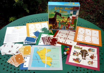 Celui-ci nous parle du Pérou. La règle, confuse, hésite entre compétition et coopération sans prendre vraiment parti. Au final, on a une sorte de Loto sur le thème du pays andin, avec de beaux dessins. C'est tout. Décevant. |