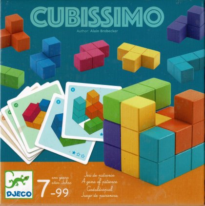 Cubissimo est un cousin du Cube Soma. Une seule pièce diffère : la pièce de trois cubes en L du Cube Soma est ici remplacée par une pièce de trois cubes en ligne. L'auteur, Alain Brobecker, nous propose trente défis de difficulté progressive. Les derniers sont vraiment difficiles !