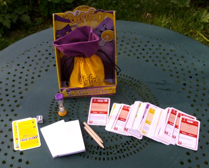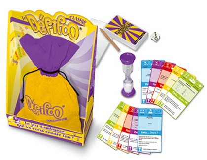 2008 : Exit le superflu !Défifoo rejoint ses petits-frères dans la très visuelle collection de sacs en tissu multicolores. Blocs de papier, stylos, sablier, dés : le nécessaire est toujours fourni, ce qui rend le jeu aisément transportable. Moins guindé que dans sa version en boîte, sa forme rejoint enfin son fond : se divertir et se défouler sans complexe.
