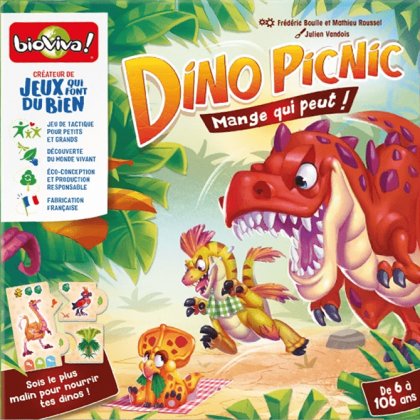 Quand les dinosaures se mettent à table, il y a ceux qui sont devant l'assiette et ceux qui sont dans l'assiette. Dino Picnic - Mange qui peut propose de créer des chaînes alimentaires préhistoriques en reliant plantes, herbivores et carnivores. Destiné aux jeunes joueurs – mais les parents ont aussi plaisir à participer – le jeu met en œuvre un principe de draft (présélection). Il faudra un peu de chance mais surtout de bonnes décision pour l'emporter.