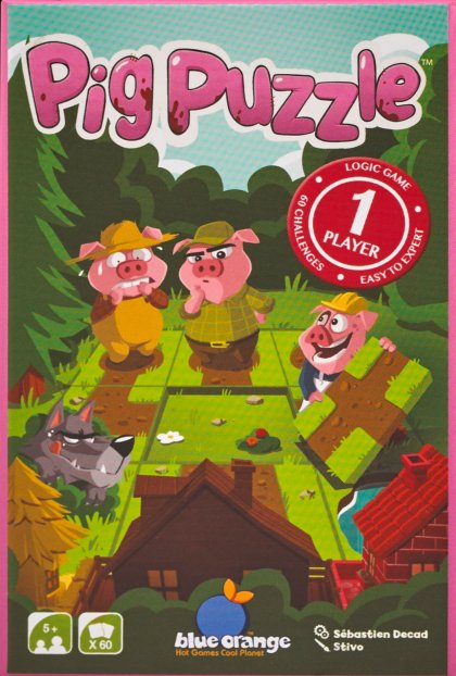 Pig Puzzle est un casse-tête géométrique ou vous devez reconstituer le chemin qui permet aux petits cochons de rejoindre leur(s) maison(s). Les soixante défis, de difficulté croissante mais généralement assez simples, sont très semblables à ceux d'autres casse-têtes du même genre, comme Le Petit Chaperon rouge ou Denk Pfade. La petite boîte est tellement bien remplie qu'on a du mal à tout y ranger.