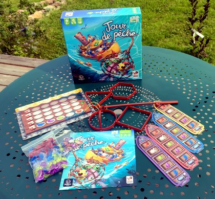 Pour rapporter les bons poissons, il faut bien choisir son filet. L'idée de base de Jour de pêche réside dans ce choix de filet : le joueur actif doit apprécier la taille et la forme du filet idéal pour sélectionner les poissons qu'il compte récolter. Et ce n'est pas si facile ! Belle idée de jeu pour les jeunes joueurs dès 4 ans avec la variante proposée.