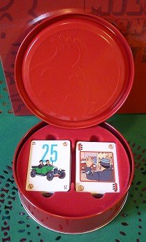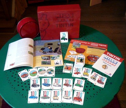Voici, à mon avis, la plus belle édition du 1000 Bornes ! Elle a été publiée à l'occasion de la sortie du film en 2011, mais les illustrations sont celles d'Hergé (que je préfère nettement). Le jeu est présenté dans une boîte en métal, il est accompagné d'un livre sur Tintin et les automobiles.
