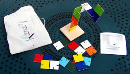 3D-Domino est un mélange de jeu de domino et de jeu d'équilibre qui s'adresse plutôt aux jeunes joueurs.