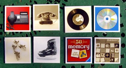 À l'occasion du cinquantième anniversaire du Memory, a eu la bonne idée de proposrr une édition spéciale. Chaque objet familier est présenté en deux exemplaires, mais les photos sont différentes. L'une représente l'objet en 1959, l'autre en 2009. On s'amuse ainsi à constater l'évolution des modes et des matériaux, quand ce n'est pas celle de la technologie. Quelques objets n'ont pas fondamentalement changé, comme le tricycle, la poupée ou la torche électrique. D'autres ont subi une profonde mutation comme l'appareil photo, le disque ou le patin à glace. Une des meilleures éditions du Memory.
