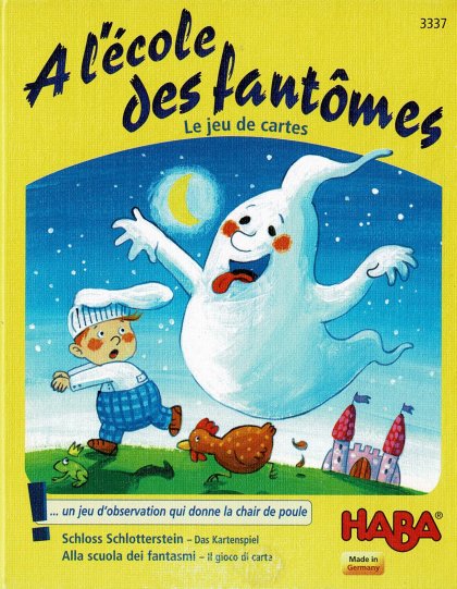 Que de monde dans le château des fantômes ! Pas moins de vingt personnages peuplent les couloirs et à chaque fois qu'on regarde quelque part, il y en a toujours une douzaine qui passent par là. Après avoir observé une carte pour essayer de mémoriser les personnages, on la retourne et chacun à son tour va prendre un des vingt visiteurs jusqu'à ce que plus personne ne reconnaisse un personnage présent dans la carte retournée. On vérifie alors les cartes retirées par chacun et on marque des points en avançant son petit fantôme sur la piste. À l’école des fantômes - Le jeu de cartes n'a pas grand chose à voir avec À l’école des fantômes si ce n'est le thème. Ici, pas d'habileté ni de fantôme aimanté. C'est la mémoire qui est à l'œuvre. Mais le plaisir est toujours là !.