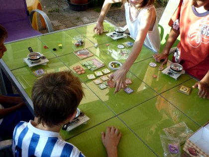Le moment le plus délicieux est la confection de la crêpe Suzette, qu'il faut habilement faire sauter à la poêle avant qu'elle ne soit totalement calcinée. Un peu de tactique, pas mal de hasard, et beaucoup de fous rires font d'À la carte, au matériel époustouflant, un jeu indispensable dans tous les foyers ludiques. On en mangerait !
