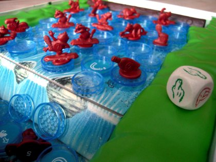 Allez les castors !, comme Thrill, est basé sur le principe du pousse pièce Le dé est composé de quatre faces « tu pousses » et de deux faces « tu pousses si tu veux ». Comme dans Thrill, le but est ici de faire tomber le moins de pièces possible. Plus exactement, il faut éviter de faire tomber des castors, la chute de vieilles bouteilles ou de godasses étant elle bénéfique tandis que les jetons vides n'ont pas de conséquence. Amusant…