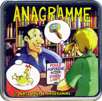 Comme l'éditeur est économe, il n'a pas voulu déformer vos poches. Il a placé cinq mots par carte, vous déciderez donc en début de partie quelle couleur de mot vous recherchez. Comme l'éditeur est professionnel, il ne s'est pas contenté d'anagrammes faciles, usant des féminins et des pluriels pour que ça « colle ». Non, toutes les anagrammes sont parfaites : verbes à l'infinitif et mots au singulier. Bien sûr, il faut avoir un peu de envie, car il existe parfois plusieurs solutions, et on ne trouve pas toujours en premier celle décidée par l'auteur. Le jeu coûte souvent moins de 10 euros. Autant dire qu'on en a pour son grenat. |