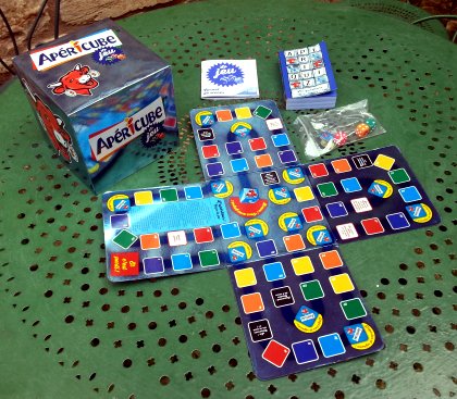 Apéricube - Le Jeu se pratique avec des apéricubes que l'on dispose le long du parcours. Quand vous arrivez sur une case où se trouve un apéricube, vous pouvez le manger… Le jeu est accompagné d'un livret de questions amusantes et intéressantes. Attention à ne pas répondre la bouche pleine. Pour votre santé, ne jouez pas plus de dix parties par jour !