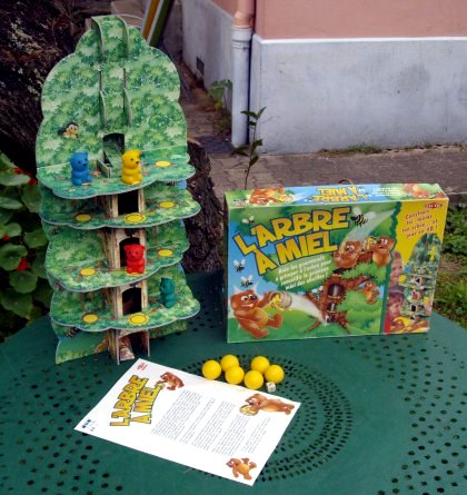 L’Arbre à miel est un très grand jeu : 58 cm ! Le principe est celui d'une course classique, où il ne faut pas se faire attraper par les adversaires. Le principal attrait est le plaisir qu'on peut éprouver à balancer un ourson adverse dans le tronc creux de l'arbre. Le matériel est plutôt solide, ce qui est assez rare dans les jeux à monter.