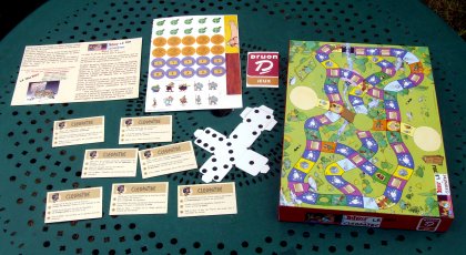 Si vous aimez les jeux légers, vous allez être servi. Astérix et Cléopâtre le jeu pèse 200 g ! En fait, il s'agit d'un extrait de « Le Jeu Astérix ». J'ose espérer que cette boîte était offerte, et non vendue, car le contenu est pour le moins réduit : une petite planche de jetons en carton léger, une règle au format A5, un dé à plier (mais pas à coller, sinon il ne tient plus dans la boîte). À ce matériel s'ajoutent sept cartes de question. La boîte ne contenant que six cases pour les ranger, je suppose qu'il faut déchirer une des cartes. On se demande qui peut bien posséder ce genre de jeu, en dehors de quelques collectionneurs fous… |