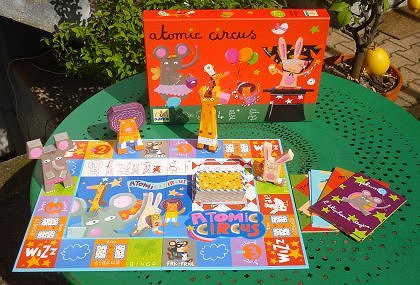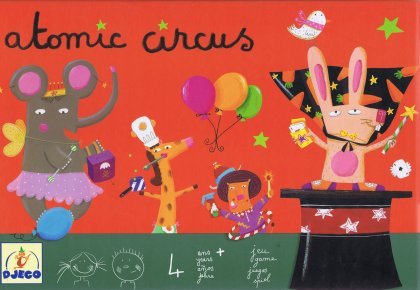 Chaque joueur essaye de récupérer les six cartes qui représentent son animal de cirque. On avance au hasard du dé. Selon la case où l'on arrive, diverses possibilité s'offrent à nous : échange, demande de carte, passer son tour, etc. Atomic Circus est un peu un jeu de 7 Familles avec un parcours, un dé et des pions. La partie commence par une féroce bataille pour choisir qui prendra le pion animal, que tout le monde veut ! Un jeu qui donne envie d'être petit…