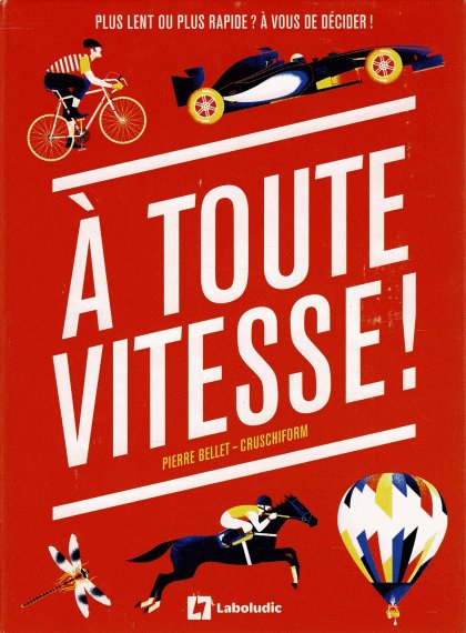 Alors que Timeline ou Chronicards nous proposent de classer des événements historiques selon leur date, À toute vitesse nous demande de classer des cartes selon la vitesse de ce qui y est représenté. La valeur prise en compte est la vitesse moyenne. Par exemple, la bicyclette est annoncée à 20 km/h alors que mon cousin Alfred peut faire des pointes à 30 km/h en descente ! Le jeu est amusant et instructif, mais les règles ne sont guère imaginatives et on aura vite fait le tour des 66 cartes.