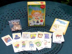 Chaque carte représente un objet familier avec, au-dessous, son nom en allemand, ce qui peut s'avérer utile si vous parlez allemand et que vous avez du mal à reconnaître un réveil d'une chaise. Dix jetons sont disposés au centre de la table. Ils sont marqués de 0 à 8 ou « + ». On tourne une carte, et il faut être le plus rapide à saisir le jeton correspondant au nombre d'objets identiques dans la pièce. Les litiges se règlent à la majorité (mais on peut aussi essayer de bouder ou de menacer de ne plus jouer…). Sympathique mais limité. |