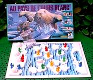Au pays de l'ours blanc rappelle inévitablement Alaska. Il ne faut toutefois pas se laisser tromper. Si le thème est identique, le mécanisme est tout à fait original. Le plan de jeu figure un morceau de mer polaire avec seize icebergs qui y dérivent. Les esquimaux habitent d'un côté, mais la nourriture, d'appétissants poissons argentés, vit de l'autre côté. Il va falloir aller chercher le poisson avec ses esquimaux, et être le premier à en rapporter quatre à son igloo. Pour cela, on jette un dé qui donne un nombre d'actions, deux, trois ou quatre, puis on réalise ces actions qui peuvent être au choix soit de bouger un esquimau d'un morceau de glace à un autre, soit de bouger un iceberg jusqu'à ce qu'il touche un autre morceau de glace. Le plan n'est pas quadrillé, et chacun est libre de déplacer les icebergs à son envie, tant qu'ils ne touchent aucune autre pièce. On peut ainsi se faufiler parfois d'un bout à l'autre du jeu.