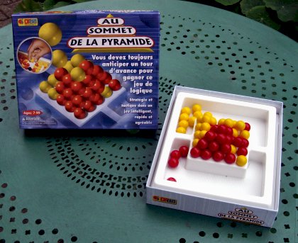 Au sommet de la pyramide, publié en 1992, fait un peu penser à Pylos, publié deux ans plus tard. Le tableau de jeu est plus grand puisque la base fait vingt-cinq cases.