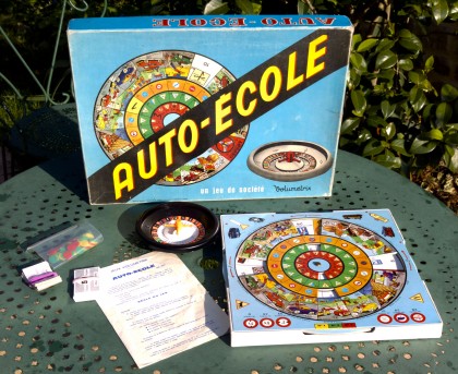 Volumétrix propose, avec Auto-école, d'apprendre les signaux du code de la route. La règle est bien alambiquée pour, finalement, lancer une ou deux fois la roulette et tenter de répondre à la question visible. Il y a même des jetons dans la boîte dont l'utilité nous est expliquée à la dernière phrase de la règle : « Des jetons de couleur joints à notre Jeu vous procureront un petit intermède en jouant à la Roulette. »
