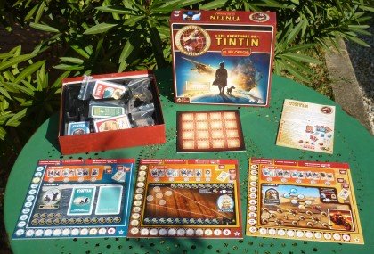 Avec l'arrivée du film Les Aventures de Tintin : Le Secret de la Licorne Heureusement, dans le cas présent, il a été fait appel à un des meilleurs créateurs français de jeux familiaux. Le résultat est un jeu amusant, bâti autour des aventures de notre petit reporter. Il fait appel à des capacités très variées : adresse, culot, tactique, combinaison, mémoire et esprit d'équipe. Car Les Aventures de Tintin - Le Jeu officiel est avant tout un jeu de coopération où il va falloir s'entraider pour gagner un maximum d'indices qui permettront au final de gagner. Chaque tableau peut voir sa difficulté modulée en réglant le parcours à seize cases (très difficile), dix-huit cases (difficile), ou vingt cases (moins difficile mais quand même). Inutile de frimer : commencez vos premières parties avec vingt cases ! Et si vous gagnez, c'est que vous êtes particulièrement forts ou bien organisés.