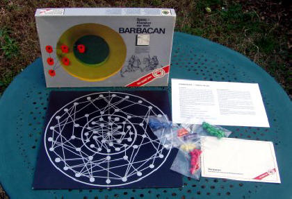 Le tablier de Barbacan est intriguant. En théorie, il symbolise une citadelle et ses voies d'accès, alors qu'on croirait davantage à une carte astronomique. Les joueurs posent tour à tour un pion en périphérie puis partent à l'assaut de la citadelle. Les portes d'entrée de la citadelle sont à sens unique : une fois franchies, on ne peut plus revenir en arrière. Jeu essentiellement tactique, Barbacan souffre malheureusement de blocages qui ne sont pas résolus par la règle.