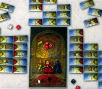 « Mais pourquoi prendre des dés ? », me demande M. Guy Liguily de Saint-Julien-Molin-Molette. Parce qu'il est possible, à son tour de jouer, de jeter alors plusieurs dés. Cela optimise la possibilité d'atteindre une case particulière, soit qu'on souhaite prendre un bâtiment, soit qu'on essaye de déclencher un décompte en zone favorable. La petite boîte cache un beau matériel qui ajoute au plaisir du jeu. |
