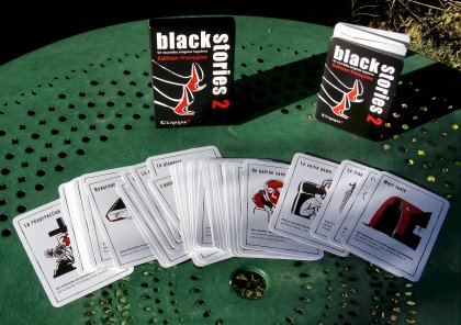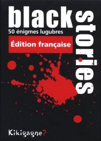 Black Stories, ce sont cinquante énigmes à résoudre ensemble. Le meneur lit l'énoncé et les autres joueurs posent des questions auxquelles il ne pourra répondre que par oui ou par non. Thème oblige, toutes les histoires ont pour sujet des histoires macabres.