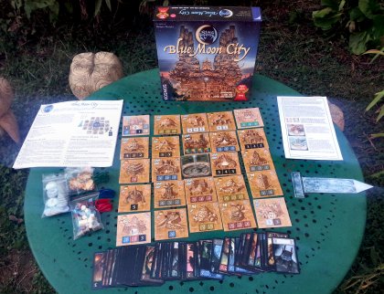 On n'est pas obligé d'adhérer au thème proposé, un monde fantastique peuplé de créatures étranges, pour goûter au plaisir de Blue Moon City. La mécanique est facilement abordable : je déplace mon pion, je joue des cartes en combinaison pour prendre des positions, je pioche deux cartes, à toi de jouer ! La seule légère difficulté consiste à mémoriser les pouvoirs des cartes, pour en tirer toute la substantifique moelle. Avec l'habitude, les parties durent moins d'une heure, ce qui en fait un bon jeu « moyen », à peine plus difficile que Les Aventuriers du rail. ExtensionVous trouverez, à la fin du fichier des règles, tout le nécessaire pour réaliser facilement les quatre tuiles de l'extension officielle. |