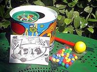Le but est de rentrer les billes des adversaires, et pas les siennes, dans le trou central. L'essentiel de la rigolade se passe après le jeu, quand tout le monde est à quatre pattes dans la pièce pour chercher cette fichue bille qui a roulé on ne sait où… Amusant pour démarrer une soirée, mais il ne faut pas en abuser. |