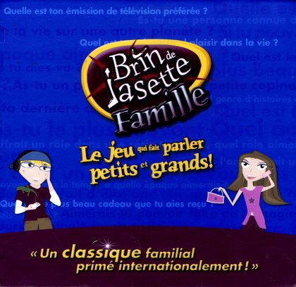 La catégorie « Droit au but », dans la version classique, évite soigneusement les questions scabreuses. C'est tout un art de trouver des questions embarrassantes sans tomber dans l'obscénité. Un art que maîtrisent visiblement les créateurs des questions de Brin de jasette. Bravo ! 2007 : Brin de jasette - Copines Brin de jasette - Copines ne s'adresse pas aux adolescentes mais plutôt aux « vieilles copines », qui aiment à parler entre elles de leur couple, de leur jeunesse (pour celles qui ont bonne mémoire), de leurs amis et de leurs passions. Parfois, il est préférable de ne pas assister à un jeu… 2008 : Brin de jasette - CouplesDeux manières de jouer à Brin de jasette - Couples : en tête à tête ou entre couples. À deux, c'est l'occasion de découvrir des facettes cachées de son partenaire. À plusieurs couples, on joue en équipes, et le jeu est l'occasion de mieux se connaître entre amis. Attention toutefois : certaines questions touchent à l'intimité profonde comme « qui parmi vous fait la cuisine ? » ou « qui de vous deux décide du programme télé ? ». 2010 : Brin de jasette - Familles L'édition Brin de jasette - Familles est accompagnée d'un épais livret recensant de multiples façons d'aborder le jeu, y compris en classe. |
