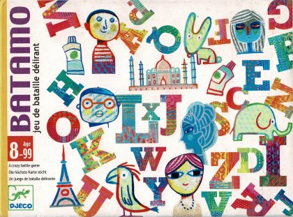 Dans Batamo, il y a deux types de cartes et donc trois types de rencontres quand on en retourne deux. Lorsqu'un thème et une lettre apparaissent, il faut être le plus rapide à citer un mot commençant par la lettre et se rapportant au thème, comme dans le Jeu du baccalauréat. Lorsque deux lettres apparaissent, il faut dire un mot qui les associe. Et lorsque deux thèmes apparaissent, il y a bataille ! À plus de deux joueurs, lorsqu'il n'y a que des lettres, il faut citer un mot qui en associe deux, mais on peut corser l'affaire en exigeant que toutes les lettres soient utilisées. S'il y a un thème et des lettres, on peut aussi exiger que toutes les lettres soient dans le mot se rapportant au thème. Et là, ça devient un jeu pour toute la famille, surtout si les enfants peuvent n'utiliser que la règle de base.