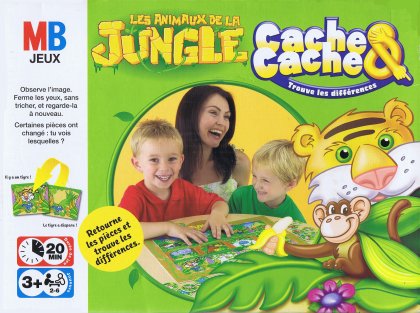 Cache & Cache est dérivé du Jeu de Kim : après avoir observé une scène, on demande aux joueurs de détourner le regard. Le maître de jeu (en gros, la maman ou le papa) retourne alors deux ou trois éléments de la scène, et il va s'agir de retrouver lesquels ! Pour corser un peu le tout, on peut modifier l'emplacement des cartes. Pour simplifier, on ne retourne qu'une ou deux pièces. Le jeu a été décliné sur de nombreux thèmes. Cache & Cache - Animaux de la jungle