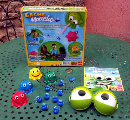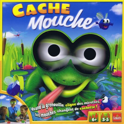 Cache mouche est une adaptation amusante du bonneteau. À tour de rôle, les joueurs incarnent une grenouille affamée qui aimerait bien manger une mouche. Le souci, c'est que celle-ci se déplace sans cesse de cachette en cachette. Elle profite de la fatigue de notre grenouille qui doit fermer les yeux à intervalles irréguliers.
