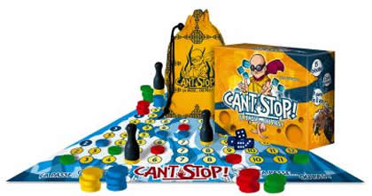 Jeu de dés et de prise de risque, Can’t Stop est semblable dans son principe au Jeu de cochons. À votre tour, vous jetez les dés et réalisez une avance sur le plan de jeu. Si vous arrêtez, vous validez votre avance. Si vous décidez de continuer, vous prenez le risque de perdre cette avance, mais aussi celui de l'accroître considérablement.