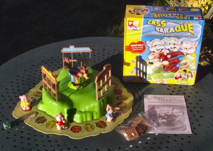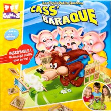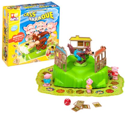 Cass’Baraque fonctionne avec des piles qui actionnent une soufflerie, l'air s'évacuant par la bouche du loup. Le but est de construire le premier une baraque complète. Les éléments en paille ou en bois sont plus faciles à trouver, mais ils ne résistent pas au souffle du loup. À vous de voir si vous préférez une habitation pérenne ou une maison faite à la va-vite (à 15 euros par jour