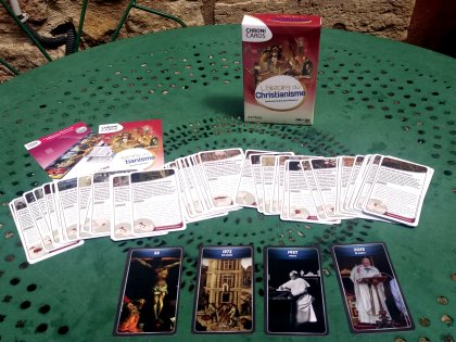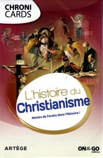 Curieusement, la chronologie de cette édition consacrée au christianisme ne commence pas en l'an 0 mais en 33, date traditionnelle de la mort de Jésus de Nazareth. Le jeu est composé de 60 dates de l'histoire du christianisme, essentiellement axées sur le catholicisme mais avec des mentions des divers schismes. Cette histoire du christianisme est co-éditée par Artège, spécialisé dans les ouvrages religieux. Les textes sont signés par Yves Chiron, journaliste, essayiste et historien spécialisé en histoire religieuse contemporaine. |