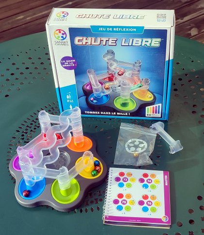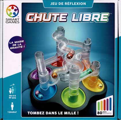Les casse-tête de placement se suivent et, malheureusement, se ressemble parfois beaucoup. Chute libre ne ressemble pas à un circuit de billes. Ne vous fiez pas à l'apparence enfantine car les défis proposés sont redoutables de difficulté. Les billes ne roulent dans la structure que pour vérifier si votre installation est valide. Un des plus beaux casse-tête de l'éditeur .