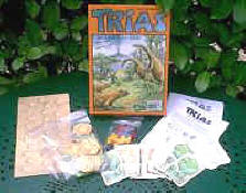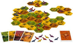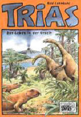L'amateur que je suis des jeux de connexion ne pouvait rester insensible à Trias, qui fait un peu penser à Carolus Magnus à l'envers. Trias est en effet un jeu de déconnexion ! Au départ, un continent unique, la Pangée, émerge à la surface de la terre. Nous nous situons à la période du Triasique, pendant l'ère mésozoïque (ce qui ne nous rajeunit pas). Chaque joueur défend les intérêts d'une espèce de grands reptiles qu'il envoie peupler les terres. Au cours du jeu, le continent unique se disloque peu à peu, faisant apparaître de nouvelles terres. Il s'agit d'être présent sur ces nouveaux continents, et si possible d'y être majoritaire. À la fin de la partie, le joueur majoritaire sur chaque île marque un nombre de points égal à la taille de l'île, tandis que le second joueur marque la moitié.