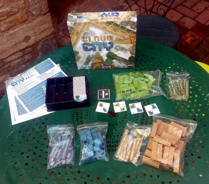L'interaction entre joueurs se limite à cette compétition pour construire les longues passerelles, fort rémunératrices. En dehors de cela, chacun joue un peu dans son coin, en se concentrant essentiellement sur un objectif : ne pas faire tomber ses tours et chasser le chat qui s'approche dangereusement de nos maquettes ! Car l'édifice est fragile et rend le jeu impraticable pour les personnes atteintes de tremblement. Vivement que mon FabLab rouvre ses portes pour que je puisse fabriquer des socles permettant de maintenir fermement tous ces immeubles. Le jeu est très agréable à jouer et quelques variantes ajoutent encore plus au plaisir.