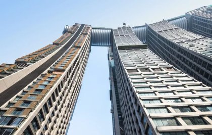 On connaît un peu moins le plus récent gratte-ciel horizontal "The Crystal", passerelle reliant à 250 m de haut quatre gratte-ciel de la ville chinoise de Chongqing.