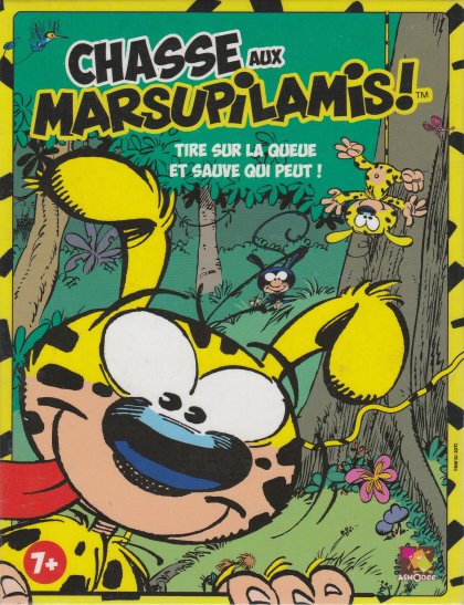 Chasse aux marsupilamis ! reprend le principe du classique gare au loup ou Le Chat et les Souris en y ajoutant un système de trois dés dont le premier peut renvoyer au résultat de l'un des deux autres. Joli matériel.