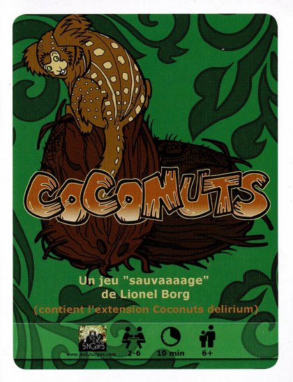 Des animaux qu'il faut compter, en sachant que certains en éliminent d'autres, l'idée a déjà été explorée avec Bongo. Dans Coconuts, on joue avec des cartes, ce qui offre plus de possibilités avec une plus grande surface permettant d'introduire des leurres. Des animaux se déguisent. D'autres transportent des pièges permettant de neutraliser leurs prédateurs. Le plus rapide pour déterminer qui l'emporte finalement et pour se précipiter sur le la bonne carte victoire remporte la manche.
