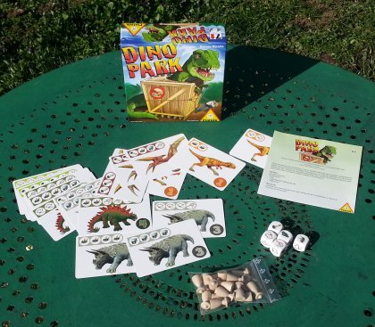 La principale nouveauté de Code Cracker, c'est la possibilité de relancer tous les dés si l'on a su mettre les bons de côté. Et c'est un réel plus, puisque le joueur peut continuer assez longtemps tant qu'il trouve des chiffres à barrer. Très difficile pour ceux qui ne savent pas s'arrêter. Dommage que les cartons soient un peu grands, car on a vraiment envie de mettre ce jeu dans la poche. Code Cracker devrait devenir un incontournable des jeux de vacances et de week-ends. 2013 : Dino Park