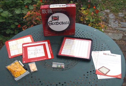 Code Sudoku est encore une adaptation du fameux jeu solitaire. Le matériel est cependant plus réussi que ce qu'on trouve habituellement, avec en particulier des tuiles très agréables à manipuler. Si elles font un peu penser à celles du Rummikub, ce n'est peut-être pas un hasard, puisque le fabriquant du jeu est le même. On peut jouer à plusieurs, selon une règle assez rudimentaire : chacun dispose à son tour d'une minute pour poser un maximum de pions. Chaque pion rapporte 1 point. Un pion qui termine une colonne, une ligne ou une zone rapporte 3 points. Malheureusement, aucun sablier n'est fourni, pas plus qu'une règle convaincante qui permette de régler les litiges, lorsqu'un adversaire conteste la pose d'une tuile. Faut-il arrêter le temps de jeu ? Quelles conséquences en cas de tuile fautive ou, au contraire, valable ? Est-ce le joueur actif qui doit démontrer que sa tuile est bonne ou est-ce à son adversaire de démontrer qu'elle est fautive ? Dommage. |