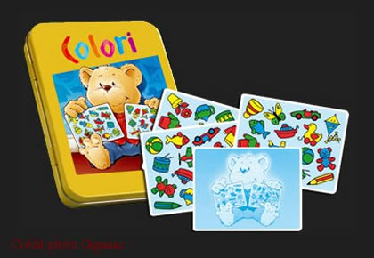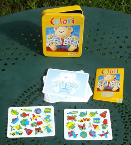 Colori, comme Pippo du même auteur, fait appel à l'observation rapide. Si le jeu est plutôt dédié aux jeunes joueurs, les plus grands prennent également plaisir à participer… et ne sont pas du tout assurés de gagner ! Le but est de trouver l'objet exactement identique sur deux planches. Les quinze objets sont toujours identiques, mais un seulement est totalement identique sur les deux planches, avec les mêmes couleurs.