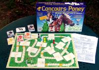 Concours poney est un jeu de parcours avec dés. On tire de temps à autre des cartes qui permettent de modifier le résultat des dés. Et l'éditeur en profite pour affubler son jeu du grade de « Jeu de stratégie » !