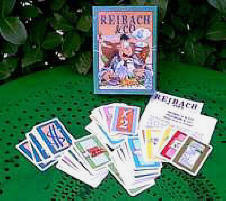 en trop sont écartés. Chaque joueur dispose ainsi d'une carte Double qu'il jouera quand il le voudra dans la partie. Cartes $Pour que la fin du jeu soit moins aléatoire, on peut décider de mélanger une carte $ parmi les 5 ou les 10 dernières cartes. On met un $ de côté, on bat le reste du jeu, puis on prend les 4 ou les 9 dernières cartes que l'on mélange avec le dernier $. Le paquet de 5 ou 10 cartes est ensuite placé sous la pioche. Règle avancée (d'après Larry Levy)Voici une façon de jouer à Reibach & Co, que nous avons testée, et qui fonctionne très bien. Elle combine plusieurs autres variantes existantes, et réalise un bon équilibre entre la force carte Double et l'avantage de jouer en premier. Les changements sont tous logiques, et vous ne pourrez plus vous passer de cette règle. Commencez par retirer du paquet les cartes Doubles, les Jokers et les $. Battez les 90 cartes restantes et distribuez 4 cartes à chaque joueur. Donnez également à chaque joueur une carte Double. Cette carte est placée visible devant le joueur. Les joueurs possèdent ces cartes, mais elles ne font pas encore partie de leurs mains. Brouillez les $, les Jokers et les éventuels Doubles qui resteraient avec le reste des cartes. Sortez les trois premières cartes, comme dans le jeu standard. Pendant le premier tour, les joueurs peuvent faire moins d'actions pour compenser l'avantage de jouer en premier. À trois joueurs, le premier joueur n'a qu'une action possible au premier tour, et le deuxième joueur 2 actions. À quatre joueurs, le premier joueur n'a qu'une action, le deuxième et le troisième joueur ont chacun 2 actions. À cinq joueurs, le premier et deuxième joueur ont chacun 1 action et le troisième joueur a 2 actions. Tous les autres joueurs ont 3 actions. Une fois le premier tour terminé, chacun a normalement 3 actions. Comme dans la variante « officielle », il faut deux points d'action pour prendre un Joker ou un Double exposé. Prendre le Double qui est devant soi et le mettre dans sa main coûte également 2 actions. Par ailleurs, cela coûte également 2 actions pour jouer une carte Double de sa main. Pour jouer un Joker, il suffit d'une action comme d'habitude. Le reste de la règle est inchangé. 2007 : CotCotCollec' – Gloria Pictoria