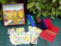 J'ai eu le plaisir d'être contacté par Kidult Game pour réaliser la traduction française des règles. À la lecture des règles, j'imaginais assez facilement un jeu plaisant et drôle. Mais lorsque j'ai enfin eu l'occasion de tester en vrai Coyote, j'ai découvert un jeu à la fois plus intelligent et plus drôle que je ne me l'imaginais. J'ai eu depuis mon retour d'Essen l'occasion d'y jouer à de nombreuses reprises, et le plaisir ne s'estompe pas, bien au contraire. Il y a dans Coyote tout ce qui fait un best-seller : des règles très simples, un matériel amusant, un prix abordable, un vrai plaisir de jeu. Ce qui semble n'être qu'un amusement de potaches se révèle un vrai jeu de bluff et de calcul. Les parties se suivent et ne se ressemblent pas, grâce à un petit nombre de cartes spéciales, qui obligent à toujours raisonner autrement : quelles sont les cartes qu'ils voient ? pourquoi annoncent-ils ce nombre ? Le but ultime est de parvenir à déduire la carte que vous avez sur le front. Mais vos adversaires usent comme vous d'habileté pour ne pas vous faciliter la tâche. Un des tous meilleurs jeux d'Essen 2003