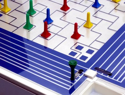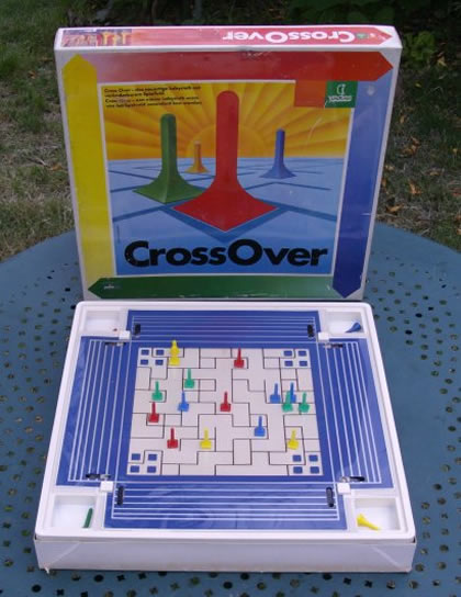Si Cross Over est entré dans ma ludothèque, c'est avant tout parce que j'étais intrigué par sa mécanique et son matériel. Le plan de jeu est constitué de deux feuilles transparentes superposées, l'une contenant les murs verticaux, l'autre les murs horizontaux. Le tout forme un labyrinthe extrêmement changeant, dans lequel il va falloir se frayer un chemin. Amusant. |